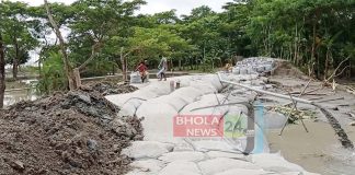 অবশেষে ৮ দিন পর ভোলায় ভেঙ্গে যাওয়া বাঁধ মেরামত
