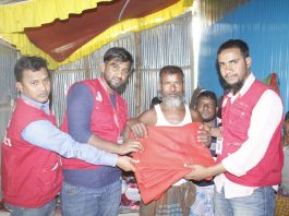 ভোলায় রেড ক্রিসেন্টের পক্ষে নেয়ামতপুর চরে কম্বল বিতরন