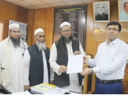 ভোলায় তাবলীগ জামাতের কার্যক্রম সুষ্ঠ ভাবে পরিচালনার জন্য স্বারকলিপি প্রদান