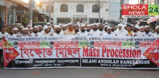 নিউজিল্যান্ডে মসজিদে খ্রিস্টান জঙ্গি হামলার প্রতিবাদে ভোলায় ইসলামী আন্দোলনের বিক্ষোভ