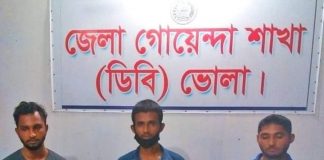 ভোলায় ডিবি মাজারুলের মাদক অভিযানে ৩ মাদক ব্যবসায়ী আটক