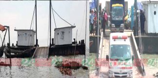 ভোলার ইলিশা ফেরিঘাট জোয়ারের পানিতে তলিয়ে গেছে,৬ ঘন্টা ফেরি চলাচল বন্ধ