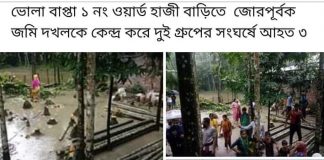 ভোলার বাপ্তায় জোরপূর্বক জমি দখলের চেষ্টাঃ হামলায় আহত-৩