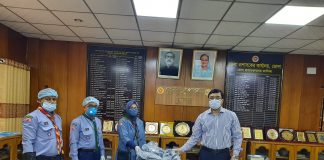 বাংলাদেশ স্কাউটস’র পিপিই ভোলা জেলা প্রশাসকের কাছে হস্তান্তর