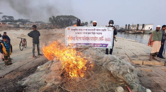 ভোলার তজুমদ্দিনের মেঘনায় অভিযান চালিয়ে উপজেলা মৎস দপ্তর প্রায় ২২ হাজার মিটার অবৈধ জাল উদ্ধার করেছে। উদ্ধারকৃত এসব জাল শশীগঞ্জ ঘাট সংলগ্ন খোলা জাগায় জনসম্মূখে আগুনে পুড়ে ধ্বংস করা হয়েছে। ধ্বংসকৃত এসব জালের আনুমানিক বাজার মুল্য প্রায় সাড়ে চার লক্ষ টাকা।