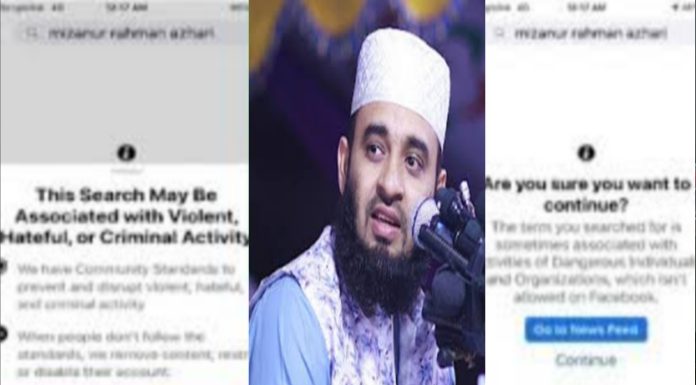ভোলা নিউজ২৪ডটকম।। আলোচিত ইসলামিক বক্তা মাওলানা মিজানুর রহমান আজহারীকে নোটিফিকেশনে পাঠিয়ে ‘বিপজ্জনক’ তালিকায় অন্তর্ভুক্ত করে তা সরিয়ে নিয়েছে ফেসবুক কর্তৃপক্ষ।