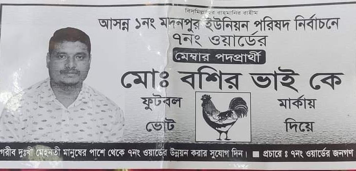 নিজেস্ব প্রতিবেদক ভোলা নিউজ ২৪ ডট কম আগামী ১১ নভেম্বর ভোলার দৌলতখান উপজেলার ১ নম্বর মদনপুর ইউনিয়ন পরিষদের নির্বাচনকে সামনে রেখে ব্যস্ত সময় পার করছেন প্রার্থীরা। তবে প্রচার-প্রচারণায় ভুল পোস্টার ছাপিয়ে সামাজিক যোগাযোগ মাধ্যম ফেসবুকে ভাইরাল হয়েছেন ওই ইউনিয়নের ৭ নম্বর ওয়ার্ডের মেম্বার প্রার্থী মো. বশির।