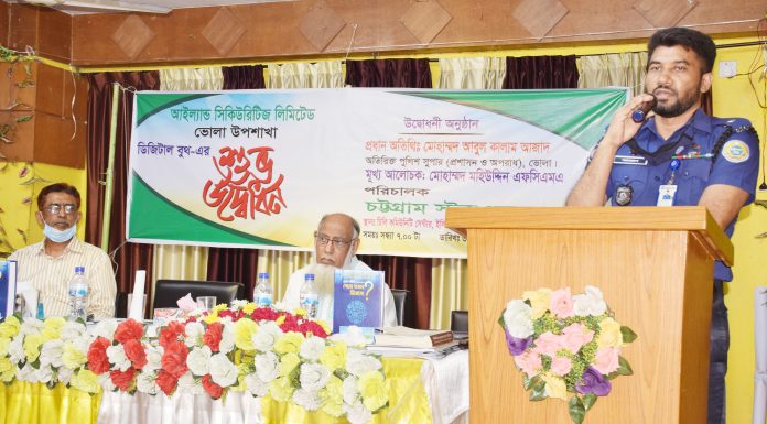 আদিল হোসেন তপু ।। ব্রেকারেজ হাউসের শাখা হিসেবে ভোলায় প্রথমবারের মতো আইল্যান্ড সিকিউরিটিজ লি: এর ‘ডিজিটাল বুথ’ উদ্বোধন করা হয়েছে। মঙ্গলবার (৩০ মার্চ) সন্ধ্যায় ভোলার একটি চাইনিজ রেস্টুরেন্টে ‘ডিজিটাল বুথ’ এর আনুষ্ঠানিক উদ্বোধন করেন ভোলার অতিরিক্ত পুলিশ সুপার (প্রশাসন ও অপরাধ) মোহাম্মদ আবুল কালাম আজাদ। উদ্বোধনী অনুষ্ঠানে প্রধান আলোচক ছিলেন চট্টগ্রাম স্টকএক্সচেঞ্জের পরিচালক মোহাম্মদ মহিউদ্দিন এফসিএমএ। দুবাইয়ের পর এবার...