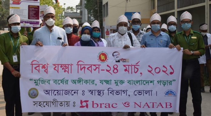 ভোলা নিউজ২৪ডটকম।।“মুজিব বর্ষের অঙ্গীকার, যক্ষা মুক্ত বাংলাদেশ গড়ার” এই প্রতিপাদ্যকে সামনে রেখে ভোলায় ‘বিশ্ব যক্ষা দিবস’ র্যালী ও আলোচনা সভার মধ্য দিয়ে পালিত হয়েছে। বুধবার (২৪ মার্চ) সকালে ভোলা স্বাস্থ্য বিভাগের আয়োজনে, ব্র্যাক ও নাটাবের সহযোগিতায় বিশ্ব যক্ষা দিবস-২৪ মার্চ, ২০২১ উপলক্ষে ভোলা সিভিল সার্জনের কার্যালয়ের সামনে থেকে একটি র্যালী বের হয়ে গুরুত্বপূর্ণ সড়ক পদক্ষিণ করে একই স্থানে এসে...
