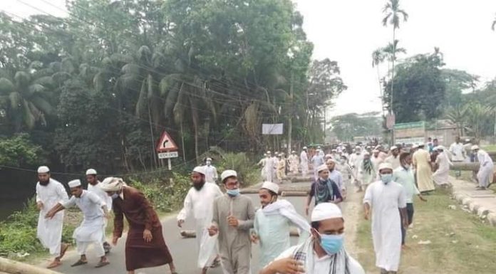 মোঃ আরিয়ান আরিফ,ভোলা নিউজ২৪ডটকম।।দেশের বিভিন্ন স্থানে সাধারণ মুসল্লিদের ওপর হামলা ও গ্রেপ্তারের প্রতিবাদে সারা দেশের মতো আজ ভোলায় হেফাজত ইসলামের হরতালের সমর্থনে ভোলা টু চরফ্যাশন সড়ক অবরোধ এবং খেয়াখাট সড়ক অবরোধ করে সকাল থেকে বিভিন্ন স্থানে বিক্ষোভ মিছিল করেছেন সর্বদলীয় মুসলিম ঐক্য পরিষদ ও হেফাজতে ইসলামের কর্মীরা।