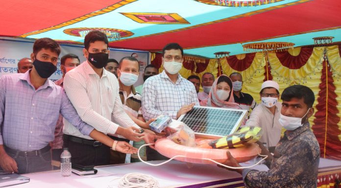 মঙ্গলবার (১৬ এপ্রিল ) সকালে ভোলার সদর উপজেলার ধনিয়া ইউনিয়ন পরিষদের মাঠে ২০০ জন জেলের মাঝে এই সামগ্রী বিতরন করেন। স্থানীয় সরকার বিভাগের উপ-পরিচালক মামুন আল ফারুক প্রধান অতিথি হিসাবে উপস্থিত থেকে এই সুরক্ষা সামগ্রী বিতরন করেন।