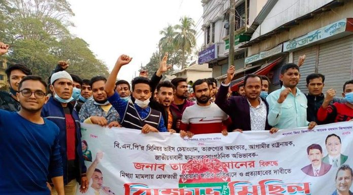 থানা যুবদলের সদস্য সচিব জাকির হোসেন সবুজের নেত্রিত্বে বিক্ষোভ মিছিল ও সমাবেশে...
