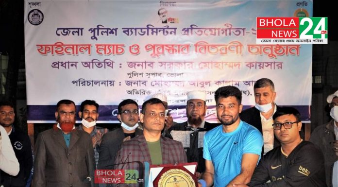 ভোলা নিউজ২৪ডটকম।। ভোলা জেলা পুলিশের আয়োজনে জেলা পুলিশ ব্যাডমিন্টন প্রতিযোগিতা -২০২১ এর ফাইনাল ম্যাচ ও পুরস্কার বিতরণী অনুষ্ঠিত হয়েছে।
