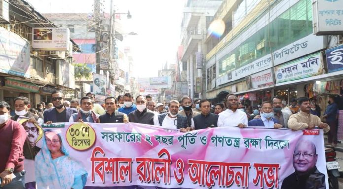 স্টাফ রিপোর্টার,ভোলা নিউজ২৪ডটকম।।একাদশ জাতীয় সংসদ নির্বাচনে আওয়ামী লীগের বিজয়ের দ্বিতীয় বর্ষপূর্তি ও গণতন্ত্রের বিজয় দিবস উপলক্ষে ভোলায় আনন্দ র্যালি ও সমাবেশ করেছে ভোলা জেলা আওয়ামীল।