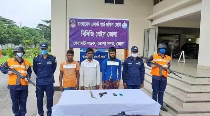 রাকিব উদ্দিন অমি।। ভোলায় অস্ত্রসহ তিন জলদস্যু আটক করেছে কোস্টগার্ড দক্ষিন জোন সদস্যরা।