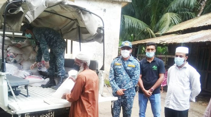 ভোলার দৌলতখানে কর্মহীন অসহায় ৭০টি পরিবারের মাঝে খাদ্য সামগ্রী বিতরণ করছেন নৌবাহিনী। আজ (১৭জুলাই) শুক্রবার সকাল ১১ টায় দৌলতখান পৌরসভার ৯ নং ওয়ার্ডের সরকারি আবু আবদুল্লা কলেজ প্রাঙ্গনে এসব কর্মহীন অসহায় শ্রমজীবী পরিবারের মাঝে খাদ্য সামগ্রী তুলে দেন ভোলার নৌবাহিনীর লেফটেন্যান্ট কমান্ডার ফয়সল বিন রশীদ।