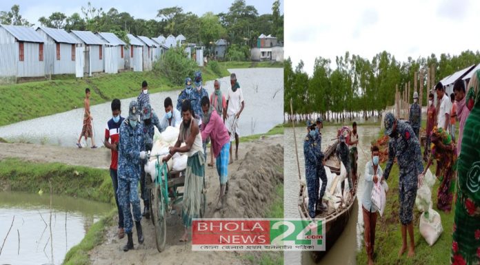 আদিল হোসেন তপু,ভোলা নিউজ২৪ডটকম।।কোরোনা ভাইরাসের প্রভাবে প্রত্যান্ত অঞ্চলের কর্মহীন অসহায় মানুষের ঘরে ঘরে গিয়ে ত্রাণ সামগ্রী পৌছে দিচ্ছেন বাংলাদেশ নৌবাহিনীর সদস্যরা। বৃহস্পতিবার দুপুরে ভোলার চরফ্যাসন উপজেলার জাহানপুর ইউনিয়নের বিচ্ছিন্ন চর হাসিনা ও শীতলক্ষ্যা, পদ্মা এবং তানিয়া আবাসনের প্রায় দুই শতাধিক পরিবারের মাঝে এসব ত্রাণ সামগ্রী বিতরণ করা হয়। ভোলা কন্টিনজেন্টের সেকেন্ড ইন কমান্ড লেফটেন্যান্ট কমান্ডার মো. আসিফের নেতৃত্বে এসব...
