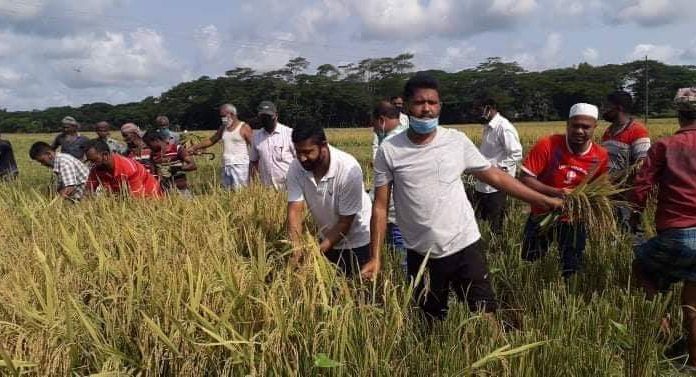 ভোলা নিউজ২৪ডটকম ।।ভোলায় সেচ্ছায় কৃষকের দেড় একর জমির ধান কেটে দিল ভোলা জেলা কৃষক লীগ।
