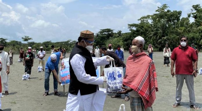 স্টাফ রিপোর্টার,ভোলা নিউজ২৪ডটকম।। ভোলায় করোনাভাইরাস প্রতিরোধে ঘরে থাকা কর্মহীন অসহায় ও দরিদ্র মানুষের ঘরে ঘরে গিয়ে খাদ্য সহায়তা পৌঁছে দিচ্ছে বিভিন্ন সংগঠন। শুক্রবার সকাল থেকে ঢাকাস্থ ভোলা ধনিয়া তুলাতলি সমিতি ও ভোলা আন্ত:জেলা বাস মালিক সমিতির সদস্যরা মানুষের ঘরে ঘরে খাদ্য পৌঁছে দেওয়া কাজ চালিয়ে যাচ্ছেন।