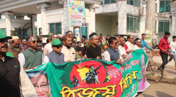 র্যলিতে ভোলা জেলা আওয়ামী লীগ, পৌর আওয়ামী লীগ, ইউনিয়ন আওয়ামী লীগ, ওর্য়াড...