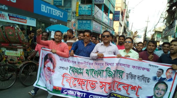 এইচ আর সুমন, ভোলা নিউজ২৪ডটনেট॥“মুক্তি মুক্তি মুক্তি চাই খালেদা জিয়ার মুক্তি চাই” এই স্লোগানে দেশনেত্রী বেগম খালেদা জিয়ার মুক্তির দাবীতে ভোলা জেলা স্বেচ্ছাসেবক দল আয়োজিত বিক্ষোভ মিছিল অনুষ্ঠিত হয়েছে। কেন্দ্রীয় কর্মসূচীর অংশ হিসেবে সোমবার দুপুরে শহরের বরিশাইল্লা দালাল মোড় থেকে বিক্ষোভ মিছিলটি বের হয়ে সদর রোড প্রদক্ষিণ করে বাংলাস্কুল মোড়ে গিয়ে শেষ হয়।