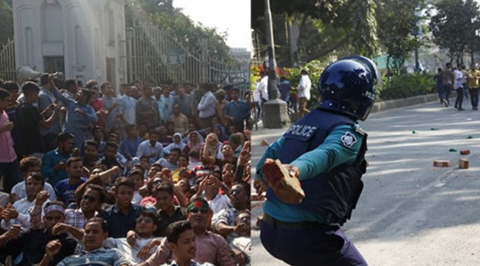 ভোলা নিউজ২৪ডটনেট।। দলের চেয়ারপারসন বেগম খালেদা জিয়ার মুক্তির দাবিতে হাইকোর্টের সামনে বিক্ষোভ ও অবস্থান কর্মসূচি পালন করেছে বিএনপি। জাতীয়তাবাদী মুক্তিযোদ্ধা প্রজন্ম দলের ব্যানারে আয়োজিত এ কর্মসূচির একপর্যায়ে বাধা দেয় পুলিশ। এসময় পুলিশের সঙ্গে বিএনপি নেতাকর্মীদের ধাওয়া-পাল্টা ধাওয়ার ঘটনা ঘটে। কয়েকটি গাড়ি ভাঙচুর করেন বিএনপি কর্মীরা। পুলিশ টিয়ারশেল নিক্ষেপ করে। পুলিশের ধাওয়ায় এক পর্যায়ে ছত্রভঙ্গ হয়ে যান বিএনপি নেতাকর্মীরা।
