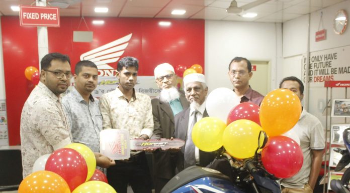 স্টাফ রিপোর্টার।। বাংলাদেশ হোন্ডা প্রাঃ লি. সমগ্র বাংলাদেশ জুড়ে একটি র্যফেল ড্র আয়োজন করে। যেখানে একটি CB HORNET 160R কিনলে লটারীর মাধ্যমে আরো একটি CB HORNET 160R পাবার সুযোগ করে দেয় বাংলাদেশ হোন্ডা প্রাঃ লি.। এ র্যাফেল ড্রতে বাংলাদেশের ১৬ জন বিজয়ী হন। এই প্রোগ্রামের আওতায় ভোলা সদর হোন্ডা মটরসাইকেলের একমাএ অনুমোদিত ডিলার "আবরার মটরস" হতে একটি CB HORNET...