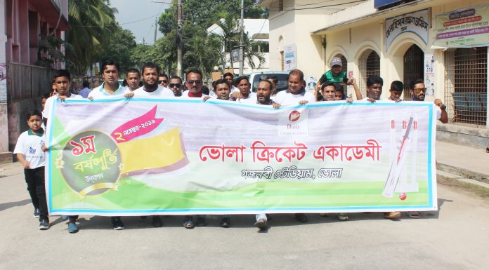 ভোলা নিউজ২৪ডটনেট ॥ভোলা ক্রিকেট একাডেমীর ১ বছর পূর্তীতে ভোলায় বনার্ঢ্য র্যালী অনুষ্ঠিত হয়। শনিবার (২নভেম্বর) সকালে ভোলা জেলা ক্রীড়া সংস্থার সামনে থেকে একাডেমীর বিভিন্ন বয়সের খেলোয়াড়দের অংশ গ্রহনে র্যালীটি বেড় হয়ে ভোলা শহরের প্রদান প্রদান সড়ক প্রদক্ষিন করে ক্রীড়া সংস্থায় সামনে গিয়ে শেষ হয়। পরে খেলোয়াড়দের অংশ গ্রহনে ১ বছর পূর্তি উপলক্ষ্যে কেক কাটা ও আলোচনা সভা অনুষ্ঠিত হয়।...