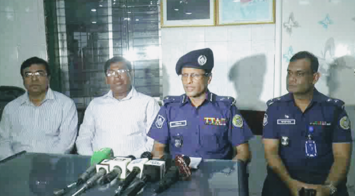 ভোলার বোরহানউদ্দিনের সংঘর্ষের ঘটনায় বরিশাল রেঞ্জের ডিআইজি শফিকুল ইসলাম ও বিভাগীয় কমিশনার ইয়ামিন চৌধুরী যৌথভাবে সংবাদ সম্মেলন করেন।