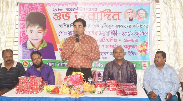 এ উপলক্ষে শুক্রবার (১৮ অক্টোবর) সকালে ভোলা জেলা প্রশাসন ও বাংলাদেশ শিশু একাডেমী ভোলা জেলা শাখার আয়োজনে কেক কাটা, আলোচনা সভা,দোয়া মাহফিল, চিত্রাঙ্কন,আবৃত্তি প্রতিযোগিতা ও শিশুদের মাঝে পুরষ্কার বিতরন অনুষ্ঠিত হয়।