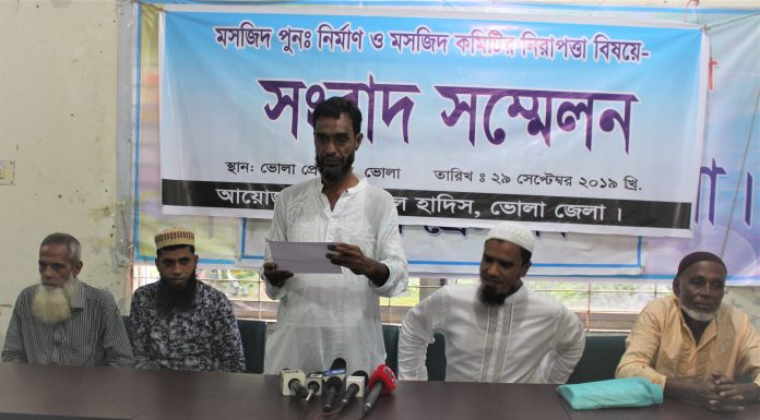 ভোলা নিউজ ২৪ ডটনেট ॥ ভোলায় আহলে হাদিস অনুসারীদের মসজিদ নির্মান করে চরম বিপাকে পড়েছেন। মাসআলা মাসায়েলাকে কেন্দ্র করে আহলে হাদিসের মসজিদ ভাংচুর করার ঘটনা ঘটে। এ ঘটনায় আদালতে মামলা করায় মুক্তিযোদ্ধা ও তার পরিবারকে বিভিন্ন ভাবে হুমকি দেয়া হচ্ছে।