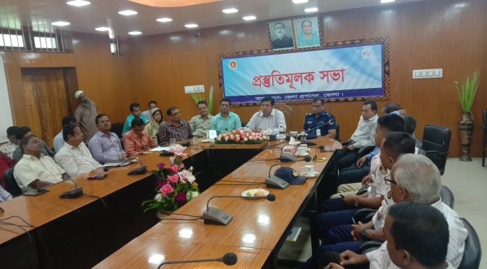 আজ সোমবার বেলা ১১টায় ভোলা জেলা প্রশাসনের আয়োজনে জেলা প্রশাসক ভোলার সম্মেলন কক্ষে এই প্রস্তুতি সভা অনুষ্ঠিত হয়। সভায় প্রধান অতিথি হিসাবে উপস্থিত ছিলেন, ভোলা জেলা প্রশাসক মোহাম্মদ মাসুদ আলম ছিদ্দিক। বিশেষ অতিথি হিসাবে উপস্থিত ছিলেন,পুলিশ সুপার সরকার মোহাম্মদ...