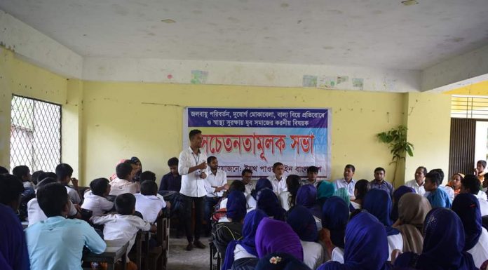 চরফ্যাশন প্রতিনিধি ॥ ভোলার চরফ্যাশনে উপজেলার টাউন মাধ্যমিক বিদ্যালয়ে জলবায়ু প্রভাব মোকাবেলায় সচেতনতামূলক সভা অনুষ্ঠিত হয়। সোমবার (২ সেপ্টেম্বর) দুপুরে স্কুল হলরুমে এই সভা অনুষ্ঠিত হয়। এতে প্রধান অতিথি হিসাবে উপস্থিত ছিলেন- টাউন মাধ্যমিক বিদ্যালয়ের প্রধান শিক্ষক আব্দুস সহিদ। এসময় বিশেষ অতিথি হিসাবে উপস্থিত ছিলেন সহকারী শিক্ষক মো: সোবাহান,বাবুল কুমাড়,নজরুল ইসলাম,তনুশ্রী দাশ,কাজল কুমাড়।