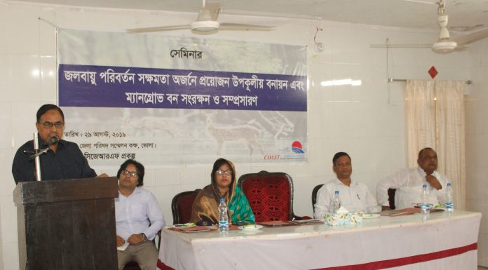 ভোলা নিউজ২৪ডটনেট।।ভোলায় জলবায়ু পরির্বতনে সক্ষমতা অর্জনে প্রয়োজন উপকুলিয় বনায়ন এবং ম্যানগ্রোভ বন সংরক্ষন ও সম্প্রসারন শীর্ষক সেমিনার অনুষ্ঠিত হয়েছে ।