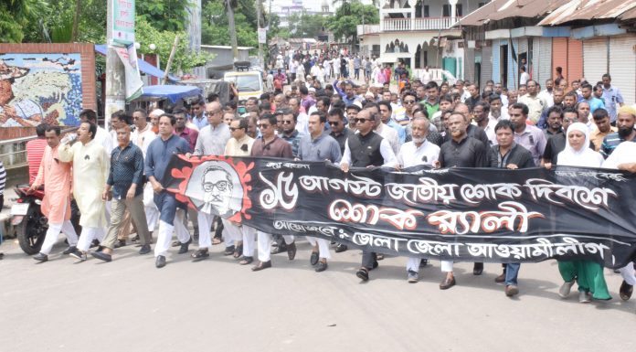 দিবসটি উপলক্ষ্যে বৃহস্পতিবার সকালে ভোলা জেলা আওয়ামীলীগের আয়োজনে আওয়ামীলীগ কার্যলয় থেকে একটি শোক র্যালি বের হয়। র্যালিটি শহরের প্রধান প্রধান সড়ক প্রদক্ষিন করে জেলা পরিষদ চত্বরে গিয়ে শেষ হয়। র্যালিতে আওয়ামীলীগের বিভিন্ন...