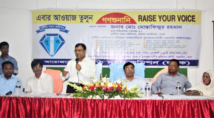 হেলাল উদ্দিন লিটন,তজুমদ্দিন ।। ভোলার তজুমদ্দিনে দুদকের গণশুনানি সরকারী অফিস সমুহে সেবা ও সুবিধা প্রাপ্তির ক্ষেত্রে সৃষ্ট সমস্যা নিষ্পত্তি,স্বচ্ছতা ও জবাবদিহিতা মূলক প্রশাসনিক ব্যবস্থা গড়ে তোলার লক্ষে ভোলার তজুমদ্দিনে দুদকের গণশুনানি অনুষ্ঠিত হয়েছে।