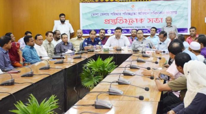 আদিল হোসেন তপু ॥ ভোলায় জেলাকে পরিষ্কার পরিচ্ছন্ন জেলা হিসাবে গড়ার লক্ষ্য নিয়ে এক প্রস্তুতিমুলক সভা অনুষ্ঠিত হয়। শনিবার (৩ আগষ্ট) সকালে ভোলা জেলা প্রশাসক সম্মেলন কক্ষে এই সভা অনুষ্ঠিত হয়। জেলা প্রশাসন এর আয়োজনে সভায় জেলা প্রশাসক মো: মাসুদ আলম ছিদ্দিক এর সভাপত্বিতে সভায় উপস্থিত ছিলেন জেলা পরিষদ চেয়ারম্যান আবদুল মমিন টুলু, ভোলা সদর উপজেলার চেয়ারম্যান মো: মোশারেফ...