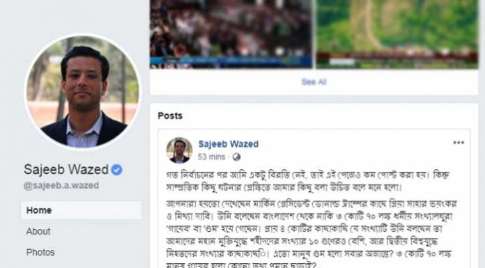 রোববার (২১ জুলাই) প্রধানমন্ত্রী শেখ হাসিনার ছেলে জয় ফেসবুকে তার ভেরিফাইড পেজে...
