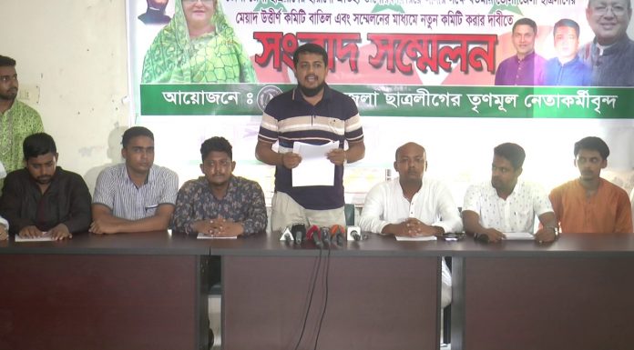 ভোলায় মেয়াদ উর্ত্তীণ কমিটি বাতিলের দাবিতে ছাত্রলীগ কর্মীদের সংবাদ সম্মেলন ও বিক্ষোভ মিছিল