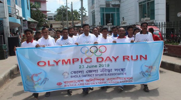 নানান আয়োজনে মধ্যে দিয়ে ভোলায় পালিত হয়েছে অলিম্পিক ডে রান।