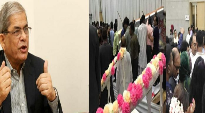 ডেস্ক রিপোর্ট: রাজবাড়ী-৩ আসনের সাবেক এমপি বিএনপি নেতা আলী নেওয়াজ খৈয়ামের ছেলের বিয়েতে দাওয়াত খেতে গিয়ে মঞ্চ ভেঙে আহত হয়েছেন বিএনপি মহাসচিব মির্জা ফখরুল ইসলাম আলমগীর, স্থায়ী কমিটির সদস্য ড. খন্দকার মোশাররফ হোসেন, মির্জা আব্বাসসহ বেশ কয়েকজন।