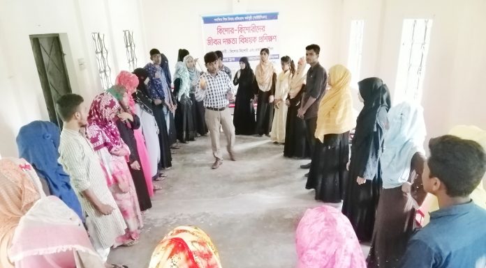 আদিল হোসেন তপু,ভোলা নিউজ২৪ডটনেট॥ ভোলায় কিশোরীদের জীবনমান বৃদ্ধি করার লক্ষ্য নিয়ে কিশোর-কিশোরী ক্লাবের সদস্যদের নিয়ে ৩ দিন ব্যাপী জীবন দক্ষতা বিষয়ক প্রশিক্ষন শুরু হয়েছে। শনিবার ভোলার হীড বাংলাদেশ টেনিং সেন্টারে ইউনিসেফ এর সহায়তায় কোস্ট ট্রাস্ট এর সমন্বিত শিশু বিবাহ রোধ কর্মসূচি (আইইসিএম) প্রকল্পের এর আয়োজনে ২৫ জন কিশোরী ক্লাবের সদস্যদের নিয়ে ১ম ব্যাচের এই প্রশিক্ষন শুরু হয়।