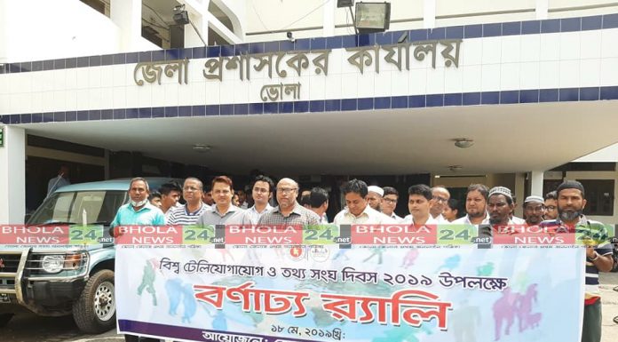 স্টাফ রিপোর্টার,ভোলা নিউজ২৪ডটনেট॥ “তথ্য প্রযুক্তির ক্ষেত্রে আন্তর্জাতিক মান সংরক্ষন ” এই প্রতিপাদ্য নিয়ে সারা দেশের মতো ভোলাতে বিশ্ব টেলিযোগাযোগ ও তথ্য সংঘ দিবস পালিত হয়েছে।