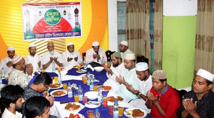 স্টাফ রিপোর্টার।।হিউম্যান রাইটস ডিফেন্ডারস ফোরাম ভোলার জেলা শাখার আয়োজনে আদর্শ সমাজ বির্নিমানে আলোচনা সভা ও ইফতার মাহফিল অনুষ্ঠিত হয়েছে।