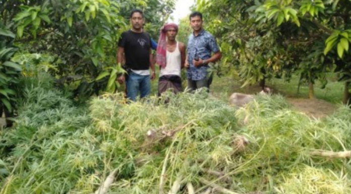 ভোলা নিউজ২৪ডটনেট। । দিনাজপুরের বিরামপুর উপজেলায় একটি আমবাগানের ভেতর থেকে বেশ কিছু গাঁজার গাছ জব্দ করেছে বিরামপুর থানা পুলিশ। এই ঘটনায় ওই বাগানের কেয়ারটেকার মো. মংলা কাশেমকে (৫০) গ্রেপ্তার করা হয়েছে।