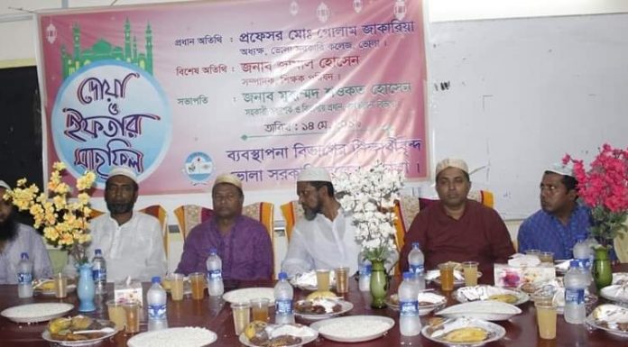 আব্দুল্লাহ আল নোমা।। ভোলা সরকারি কলেজে ব্যস্থাপনা বিভাগের আয়োজনে পবিত্র মাহে রমজান উপলক্ষে দোয় ও ইফতার মাহফিল অনুষ্ঠিত হয়েছে । মঙ্গলবার ১৪মে ভোলা সরকারি কলেজের ব্যবস্থাপনা বিভাগের সেমিনার কক্ষে দোয়া ও ইফতার মাহফিলের আয়োজন করা হয়। দোয়া ও ইফতার মাহফিল অনুষ্ঠানে ভোলা সরকারি কলেজের ব্যবস্থাপনা বিভাগের সহকারি অধ্যাপক ও বিভাগীয় প্রধান মুহাম্মদ শওকত হোসেন এর সভাপতিত্বে প্রধান অতিথি হিসেবে উপস্থিত...
