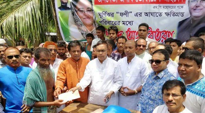 ভোলায় ঘূর্ণিঝড় ফণির প্রভাবে ক্ষতিগ্রস্ত মানুষের পাশে দাঁড়িয়েছে জেলা আওয়ামী লীগ।