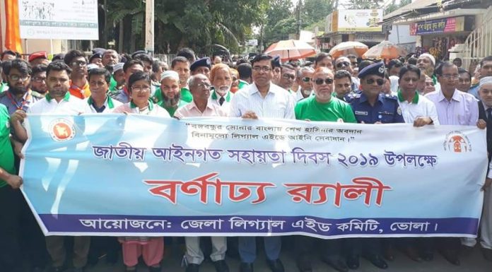 স্টাফ রিপোর্টার,ভোলা নিউজ২৪ডটনেট ॥‘বঙ্গবন্ধুর সোনার বাংলায় শেখ হাসিনার অবদান, বিনামূল্যে লিগ্যাল এইডে আইনি সেবাদান’ স্লোগানকে সামনে রেখে ভোলায় বনার্ঢ্য আয়োজনের মধ্যে দিয়ে জাতীয় আইন সহায়তা দিবস পালিত হয়েছে।