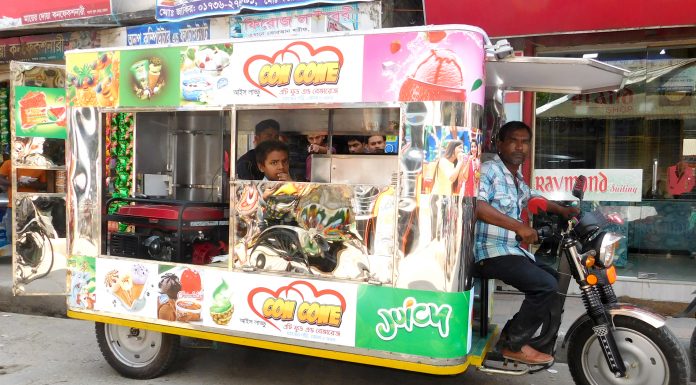 একটি গাড়িতে আইসক্রিম বানানোর সকল সরঞ্জাম ও মেশিন নিয়ে তাৎক্ষনিক কোন ও কাপ আইসক্রিম বানিয়ে দেয়া হয়।