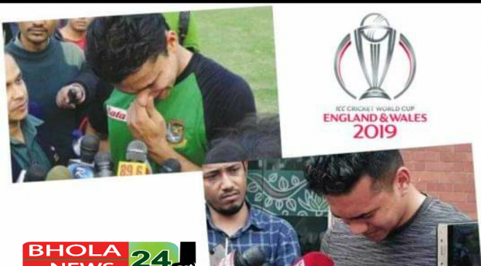 ভোলা নিউজ২৪ডটনেট ।। পাশাপাশি দুটি ছবি। একটি ২০১১ সালের। অন্যটি আজকের। কিন্তু দুটি ছবির গল্প একই। হৃদয়ভাঙার গল্প। ঘরের মাঠে বিশ্বকাপ খেলতে না পেরে সেদিন কেঁদেছিলেন বর্তমান অধিনায়ক মাশরাফি বিন মুর্তজা। আর আসন্ন বিশ্বকাপে সুযোগ না পেয়ে কাঁদলেন পেসার তাসকিন আহমেদ।